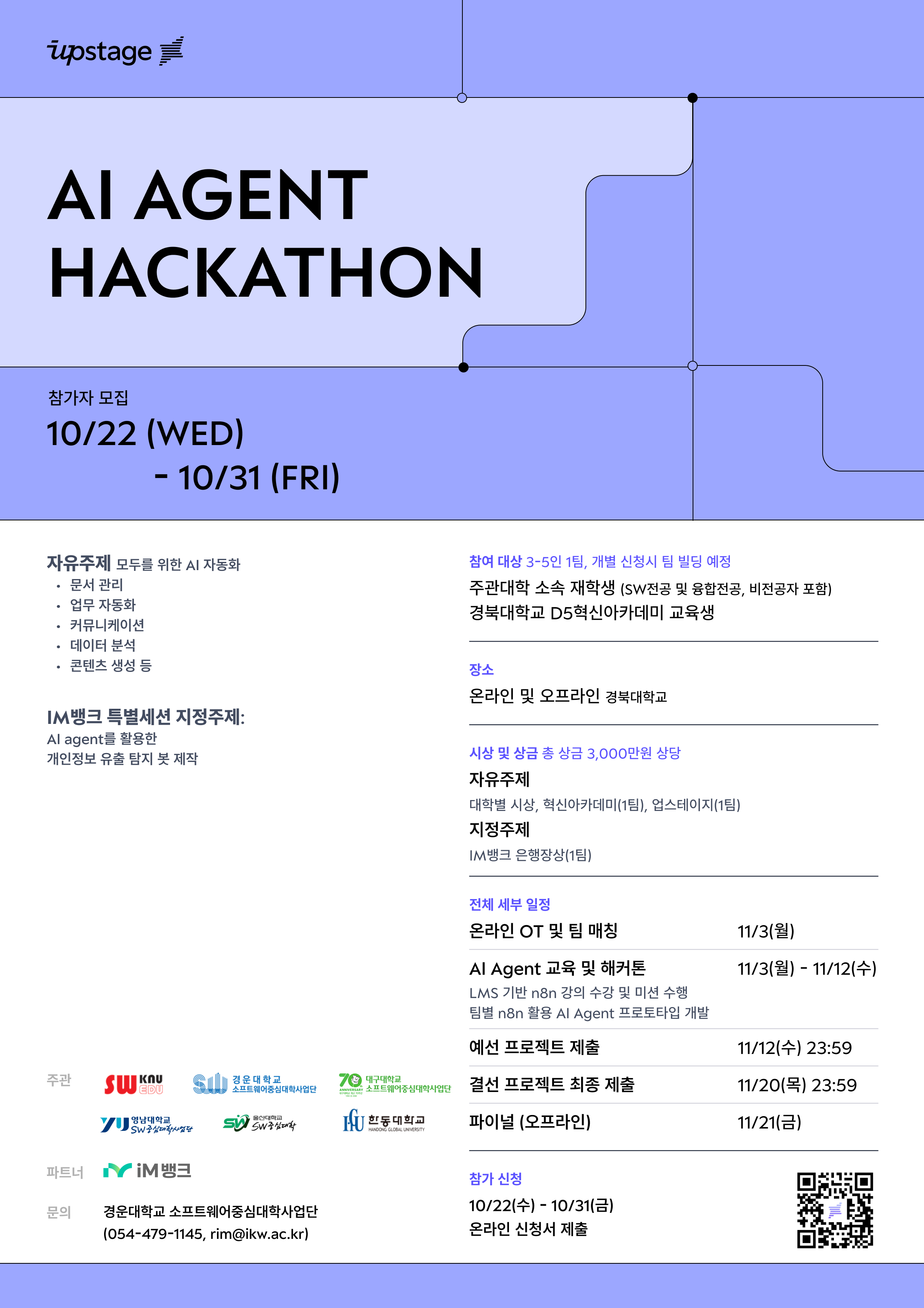 AI 자동화를 주제로 한 「2025 대구·울산·경북권 대학 x Upstage AI Agent 해커톤」참가자를 모집합니다.